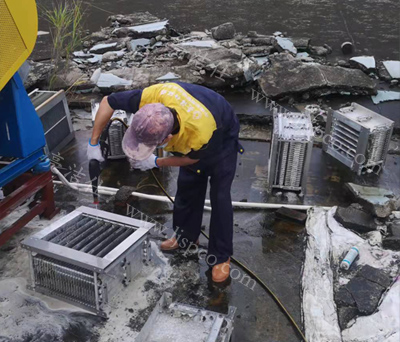 80%左右的厨房排烟不畅,主要原因往往都是。由于长时间没有对油烟净化器内置高压极片进行清洗,油污堵塞造成的,我公司使用专用高压极片清洗设备清洗。