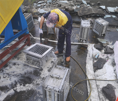 工作人员利用专业设备对灶具、排油烟罩口、排油烟管道转角处等依次拆除清洗;尤其对平时看不到的烟道里面、转角等处的油垢做了全面的清除,以保持排油烟设施的清洁,防止火灾事故的发生。